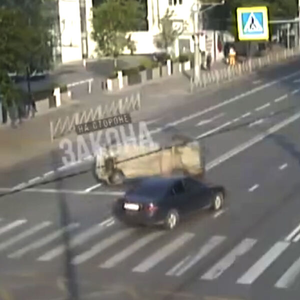 Уличная камера запечатлела инцидент. На кадрах видно, как автомобиль поворачивает на проезжей части, после чего начинает вращаться.