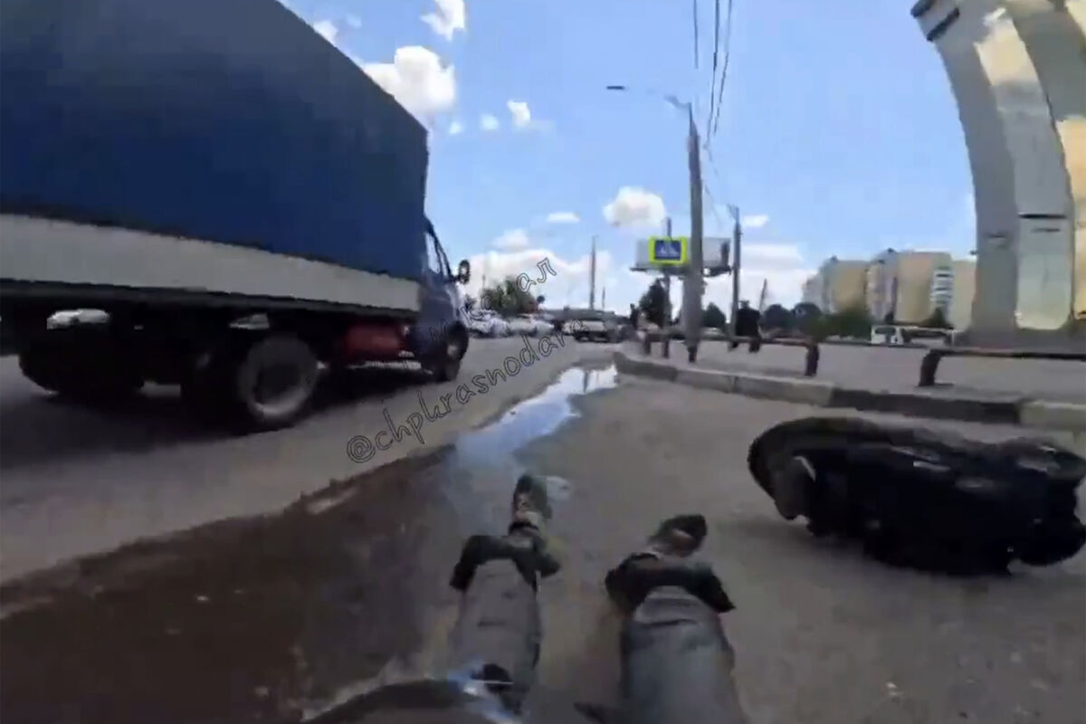 В Краснодаре на видео попало, как моноколесник на скорости влетел в «Газель»