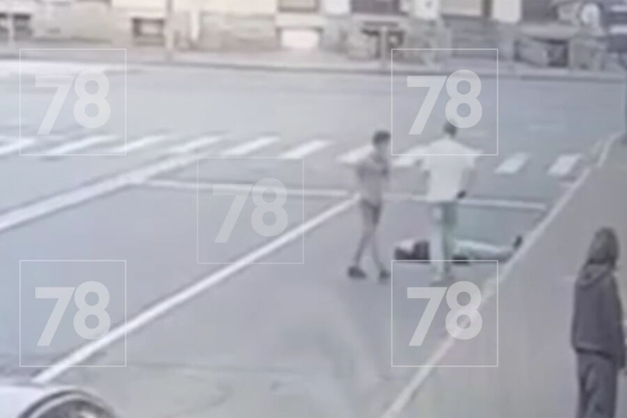 Уличная камера запечатлела инцидент. На кадрах видно, как мигрант ударяет мужчину, от удара петербуржец падает на проезжую часть.