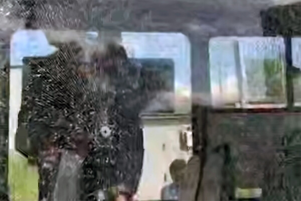 На опубликованных в сети кадрах видно, что автобус получил повреждения: у транспорта разбиты стекла.