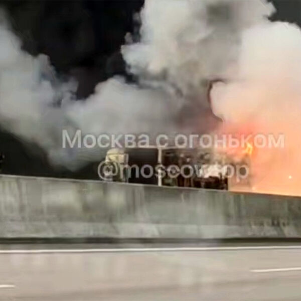 На размещенных кадрах видно, что автомобиль оказался охвачен огнем. Над ним поднялся огромный столб пыли. На месте работают пожарные.