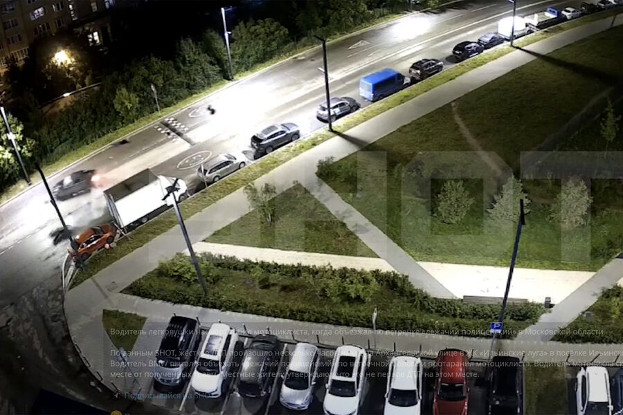 «Жесткое ДТП произошло несколько часов назад на Архангельской улице в ЖК «Ильинские луга» в поселке Ильинское-Усово. Водитель BMW пытался объехать «лежачий полицейский» по встречной полосе и протаранил мотоциклиста», — говорится в сообщении.