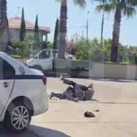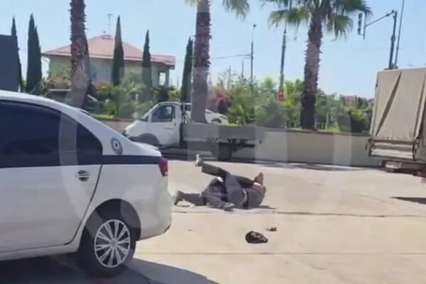 На кадрах видно, что двое мужчин сцепились, потом один из них повалил другого на землю и держал, применив борцовский прием. Также он ударил оппонента кулаком. К дерущимся подошел еще один человек, который наблюдал за происходящим, не пытаясь их разнять. Спустя короткое время мужчины прекратили потасовку и встали на ноги.