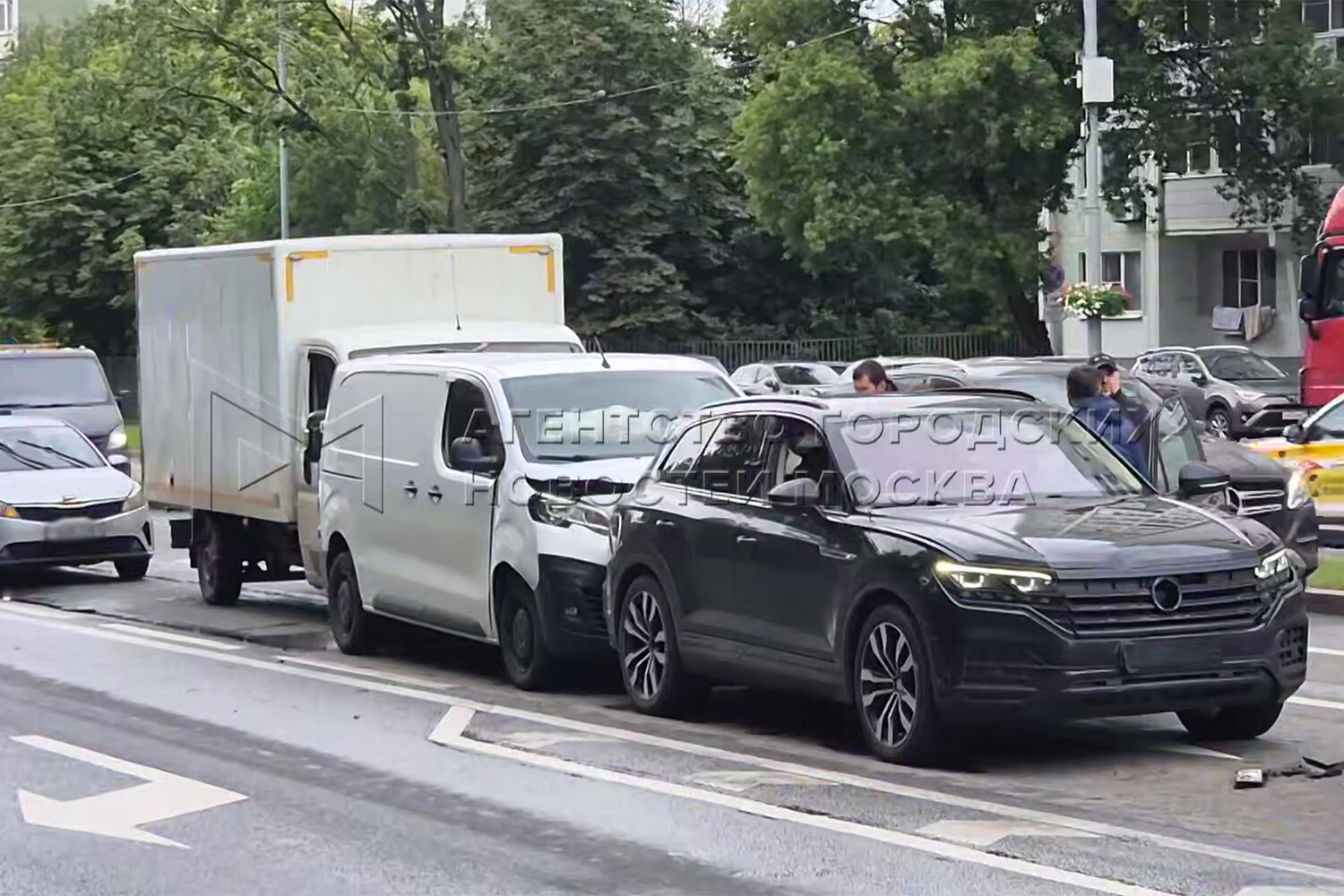 «5 машин, в том числе 2 фургона, столкнулись на Бакинской улице в Царицыно, в результате травмы получил ребенок, его госпитализировали», — говорится в сообщении.