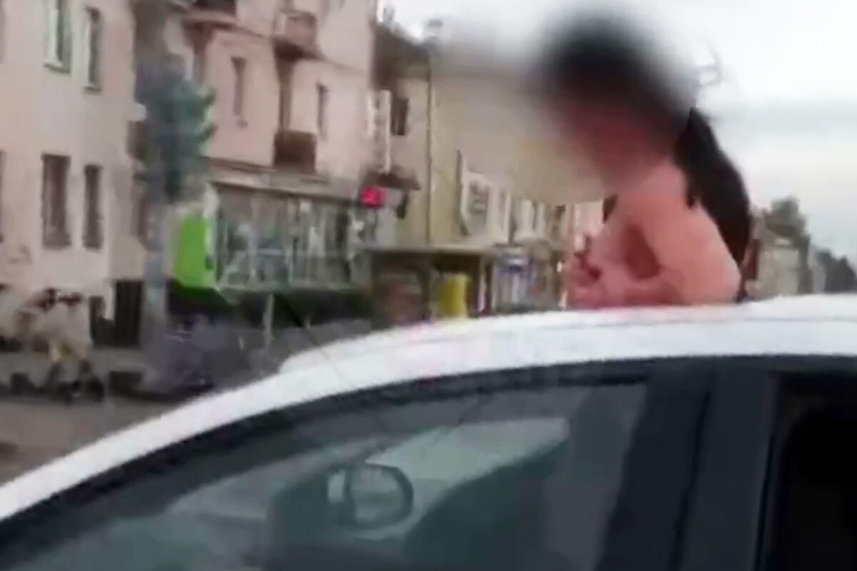 В Уфе на видео попало, как женщина держалась за грудь, высунувшись из люка авто