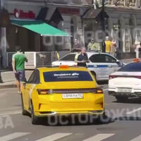 Очевидцы запечатлели последствия аварии. На кадрах видно, как машины объезжают поврежденный автомобиль такси.