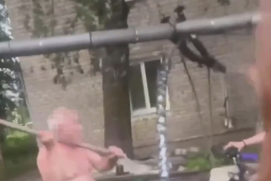 Очевидцы запечатлели инцидент на видео. На кадрах видно, как полуголый мужчина замахивается вилами на питбайкеров, после чего начинается драка, в процессе которой у самарца отбирают вилы.