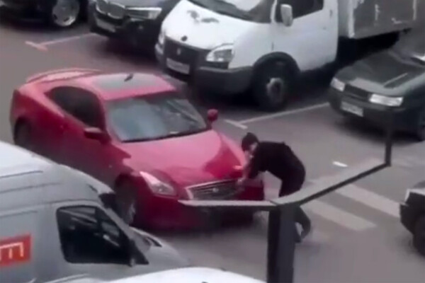 Местные жители запечатлели инцидент на видео. На кадрах видно, как москвич прыгает на капот красного автомобиля, в этот момент водительница начинает двигаться вперед. Тогда мужчина, чтобы не упасть, хватается за машину и остается на капоте. На записи также заметно, как во время движения иномарки люди ругаются.