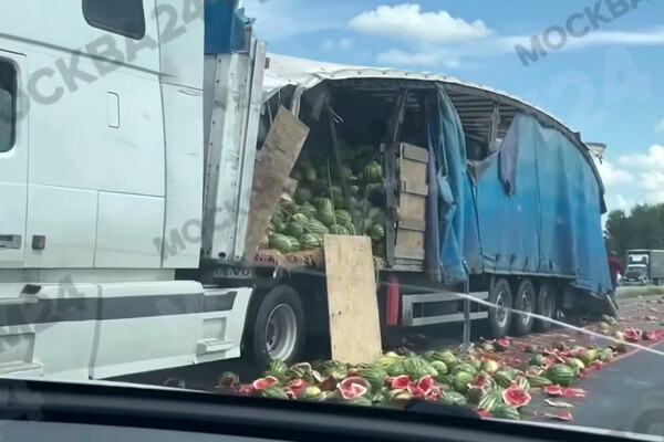 «Самая ягодная авария случилась на трассе М4. Арбузы «устроили» массовое бегство из кузова грузовика на 90 км в сторону Тамбова», — отмечается в публикации.