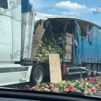По его данным, арбузы рассыпались по проезжей части в результате ДТП. Водитель другого большегруза выехал на встречную полосу и зацепил фуру с арбузами. После этого произошло столкновение с «Газелью» и Lada Largus. Движение в районе места аварии было частично ограничено.