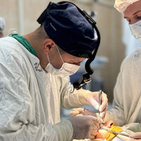 «Покрышка лопнула при накачке, а ее кусок отлетел прямо в лицо парня, проломив ему нижнюю стенку глазницы. Молодой человек обратился к медикам только через 10 дней после получения травмы. За это время рана начала зарастать в том виде, в котором она была — в глазницу провалилась окологлазничная клетчатка с нижней прямой мышцей», — говорится в публикации.