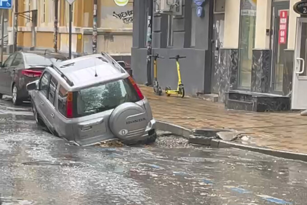 На кадрах видно, что инцидент произошел в переулке со старинной застройкой. Задняя часть серебристого кроссовера Honda CR-V оказалась под землей, ее колеса не видны над поверхностью. Также в результате инцидента в яме оказался задний бампер автомобиля. Передние колеса машины остались на асфальте.