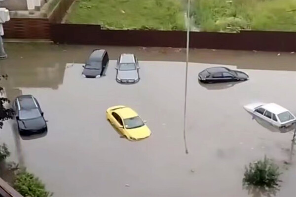 На размещенных кадрах видно, что множество автомобилей оказались затоплены до уровня лобового стекля.