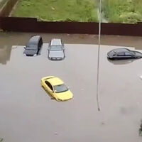 В Подмосковье автомобили ушли под воду после ливня и попали на видео