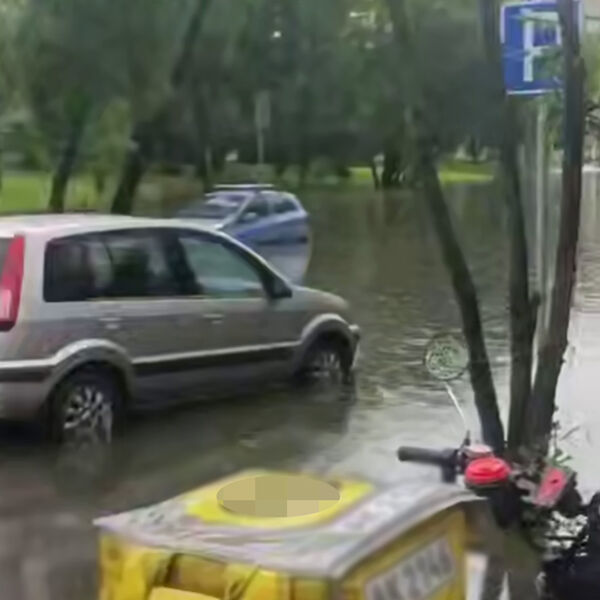 В Москве сняли на видео, как река Яуза вышла из берегов и затопила автомобили