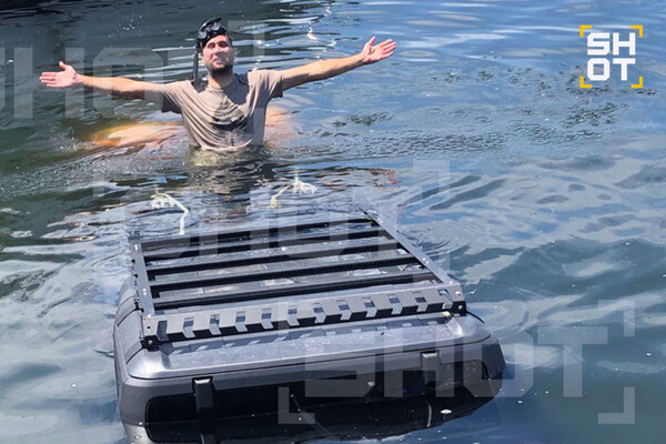 Очевидцы запечатлели инцидент на видео. На кадрах видно, что автомобиль почти полностью ушел под воду. Далее на записи заметно, как очевидцы вытаскивают утонувший внедорожник.