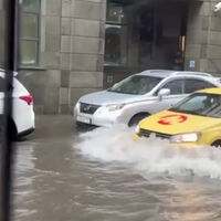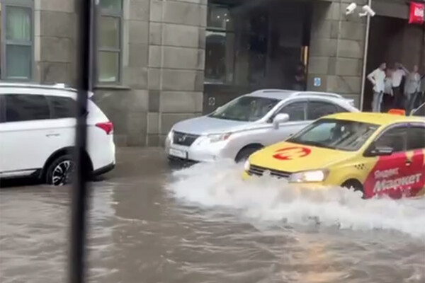 Очевидцы запечатлели произошедшее на видео. На кадрах видно, как автомобили проезжают по полностью затопленной дороге. На проезжей части также заметны волны.