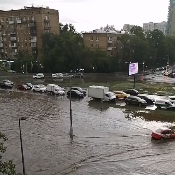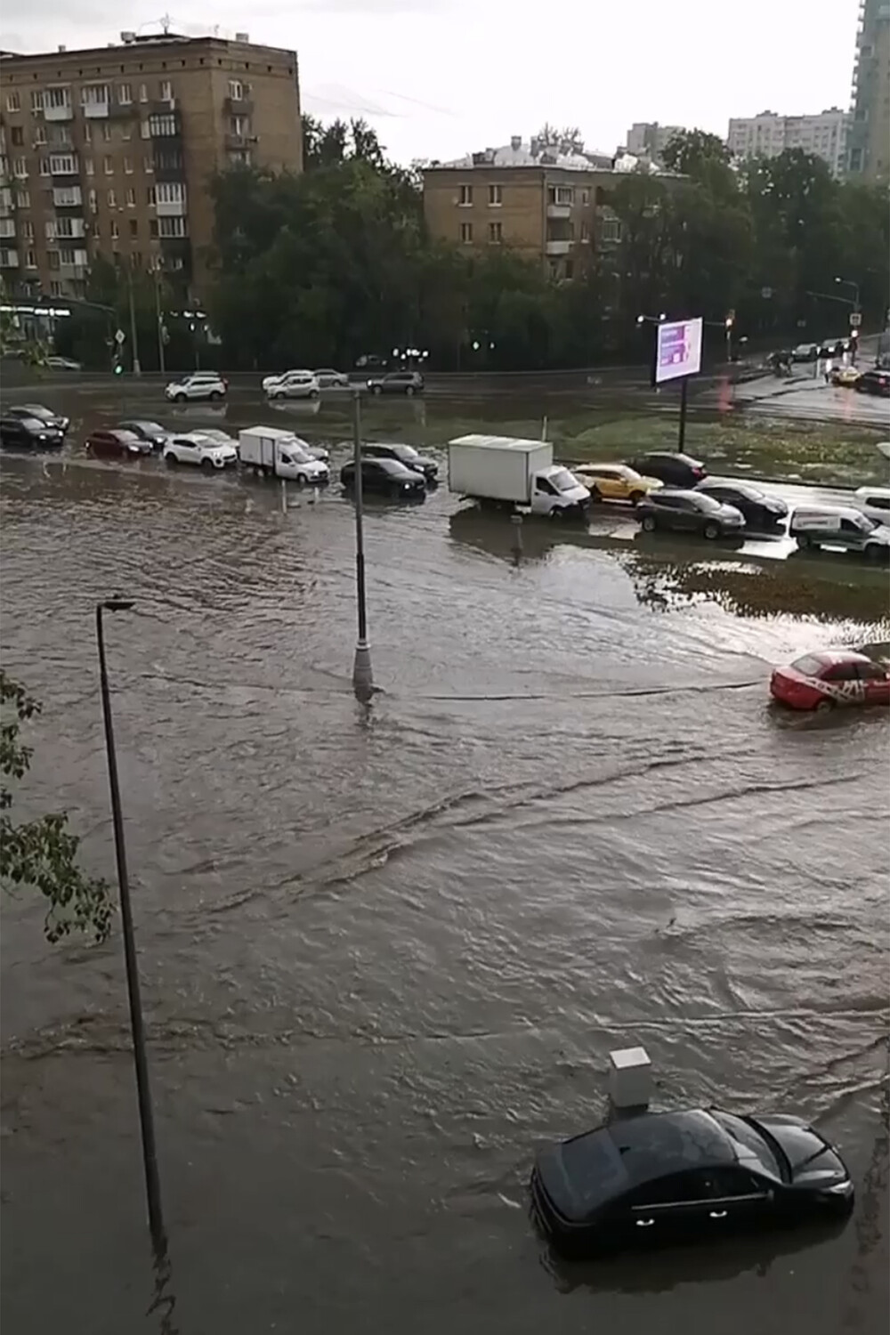 Ранее на видео попали москвичи, пробирающиеся по затопленной дороге.