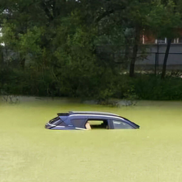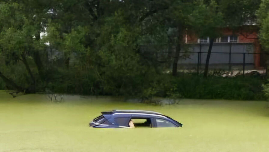 На опубликованных в сети кадрах видно, что автомобиль почти полностью ушел под воду.