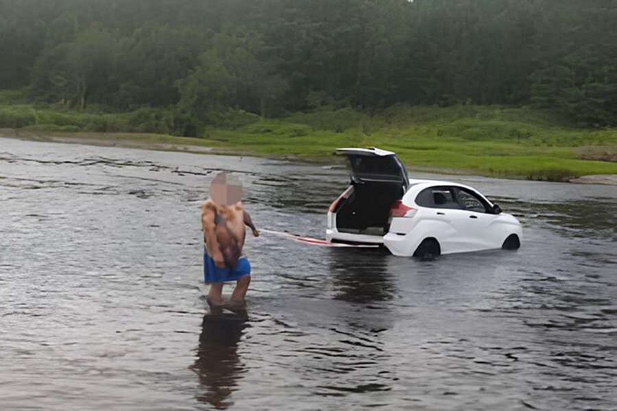 Mash: в Башкирии семья с пятилетним ребенком застряла посреди реки в Lada