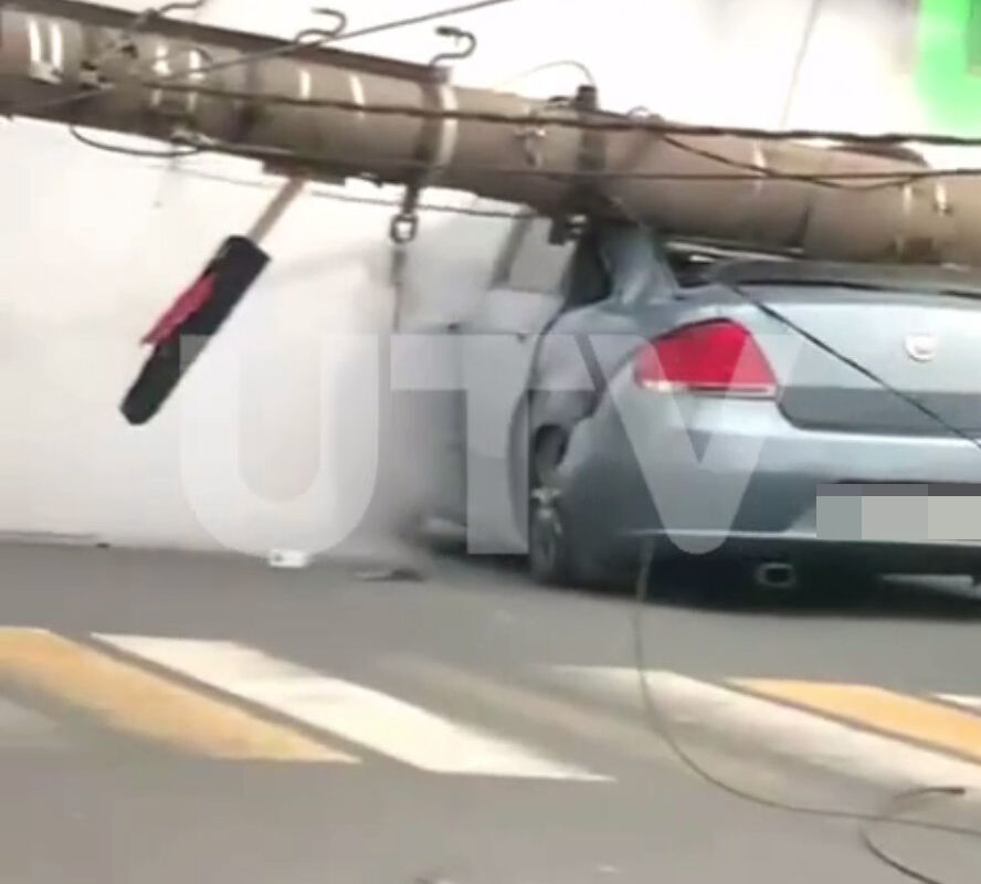 «Пострадал как минимум один автомобиль. На кадрах, снятых подписчиком UTV, видно, как один из автомобилистов снимает с машины оборванные провода голыми руками», — говорится в сообщении.