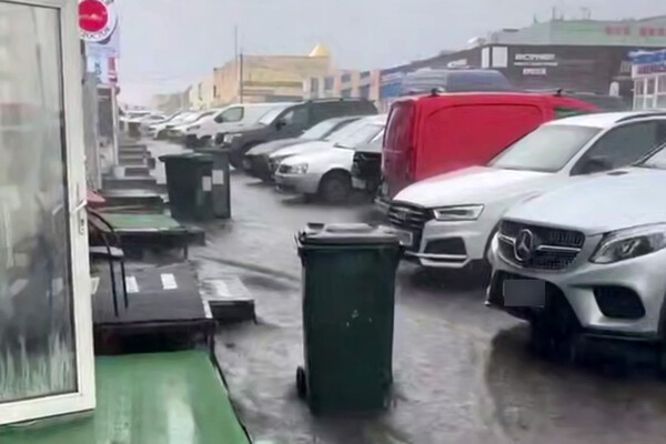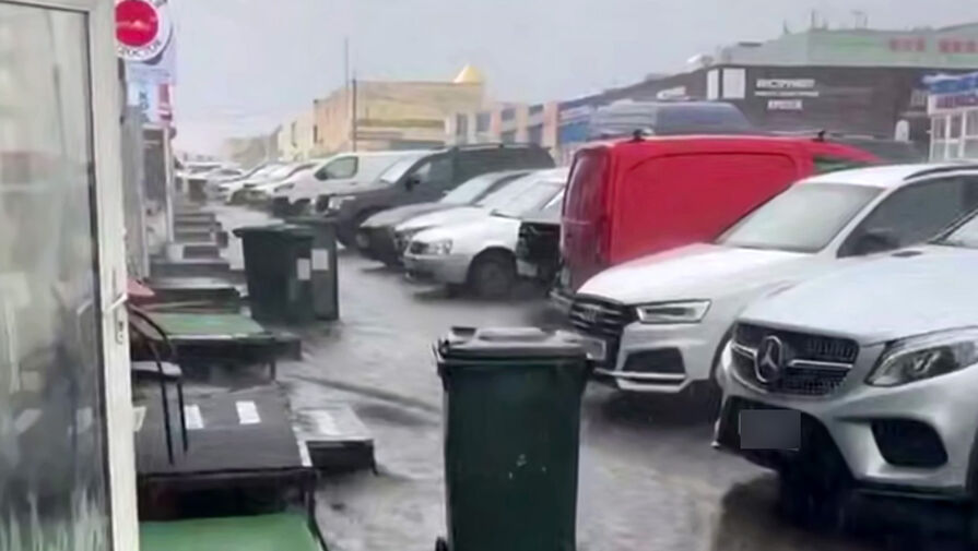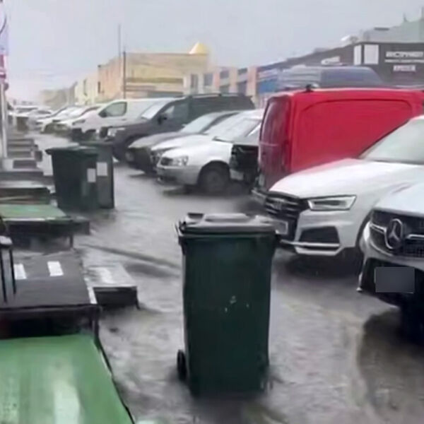 Очевидцы запечатлели инцидент на видео. На кадрах видно, как мусорный бак быстро движется по затопленной парковке. При этом остальные контейнеры стоят на месте.