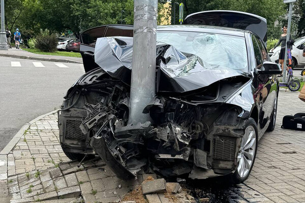«Груда металла»: в Москве премиум-авто влетело в столб и попало на видео