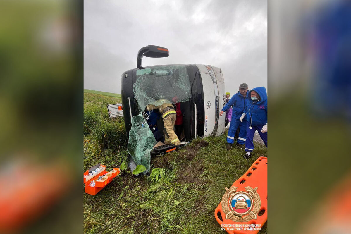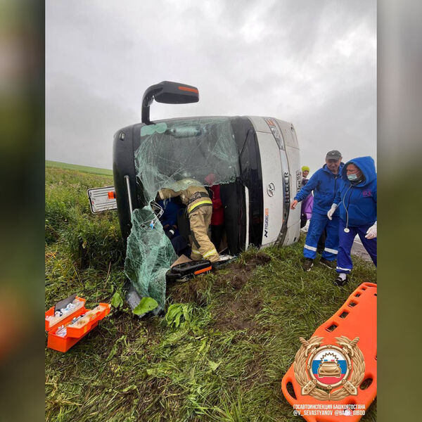 В Башкирии автобус с 40 пассажирами вылетел с трассы и перевернулся
