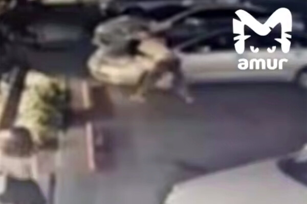 Уличная камера запечатлела инцидент. На кадрах видно, как два человека дерутся на парковке.