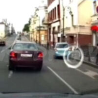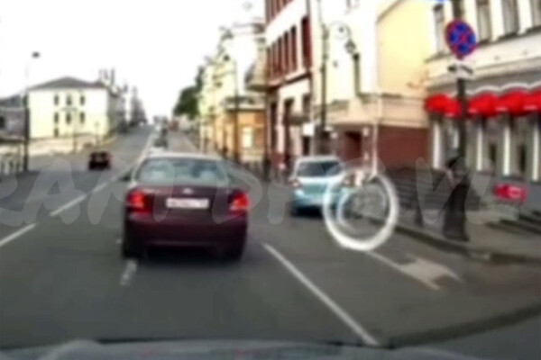 Видеорегистратор автомобиля, водитель которого стал очевидцем произошедшего, запечатлел инцидент. На кадрах видно, как машина едет по оживленной дороге, далее поворачивает и врезается в столб.