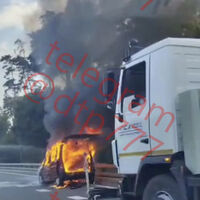 Очевидцы запечатлели инцидент на камеру. На кадрах видно, как автомобиль горит на проезжей части, при этом заметно, что пламя охватило транспорт полностью.