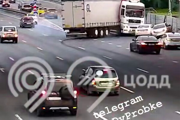 На МКАД на видео попала массовая авария с большегрузом