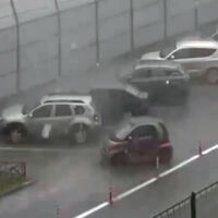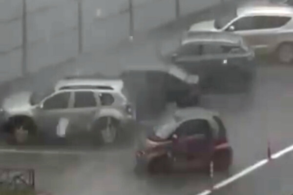 Очевидцы запечатлели инцидент на видео. На кадрах видно, как припаркованный автомобиль Smart начинает двигаться, после чего его ветром уносит на проезжую часть, где он боком встает на дорогу и останавливается. На записи также заметно, что в этот момент на улице идет сильный дождь.