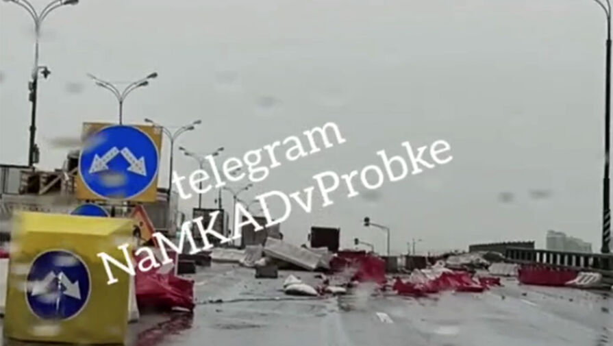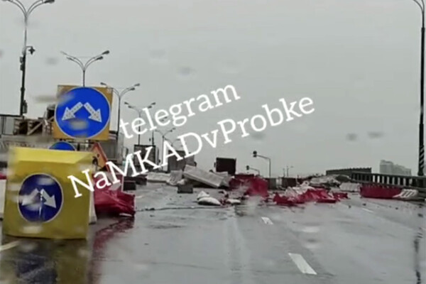 На опубликованных в сети кадрах видно, что на проезжей части стоит большегруз, при этом рядом лежат разбитые дорожные ограждения. По словам автора видео, для проезда транспорта открыты две полосы.