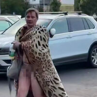 В Москве мужчина без трусов прошелся по парковке, прикрываясь леопардовым покрывалом. Ролик опубликовал Telegram-канал «Что там, Москва?».