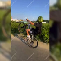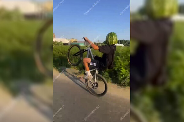 Подросток в шлеме из арбуза прокатился по Краснодару и попал на видео