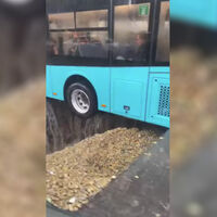 На кадрах с места происшествия видно, что троллейбус лазурного цвета повис над глубокой ямой. В поверхность асфальта уперлись передняя и задняя часть кузова, вне пределов колесной базы машины. На улице при этом идет сильный дождь. По предварительным данным, в результате инцидента никто не пострадал. в момент обвала грунта в салоне находились пассажиры.