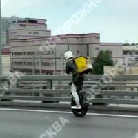 На опубликованных в сети кадрах видно, как моноклесник едет по обочине дороги на большой скорости. Мужчина одет в плащ, а на его плечах — термосумка. На записи также слышно, как водитель смеется с моноколесника.