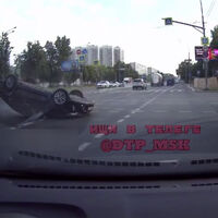 Видеорегистратор автомобиля, водитель которого стал очевидцем произошедшего, запечатлел инцидент. На кадрах видно, как автомобиль врезается в машину, которая находится на соседней полосе, переворачивается и приземляется на крышу. Далее на записи заметно, как из поврежденной машины выбираются люди. Кроме того, к месту ДТП побегают прохожие.