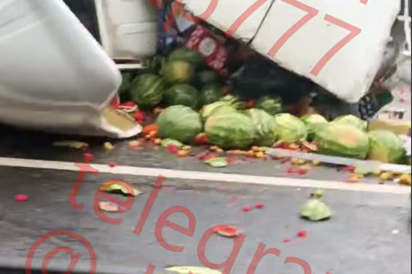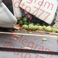 На видео видно, что грузовик лежит на боку на шоссе. Из разбитого грузового отсека на проезжую часть высыпались арбузы. Ими оказались завалены две полосы. Водители других машин были вынуждены снижать скорость и объезжать рассыпавшийся груз.