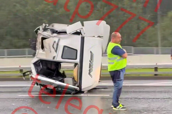 «Москва, 57-км МКАД (внутр.). У грузовика оторвало кабину», — говорится в сообщении.