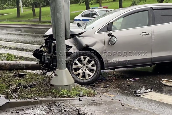 В Москве на видео сняли последствия жесткого столкновения Mazda со столбом