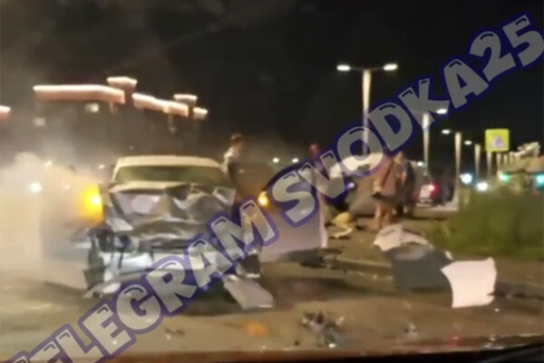 Во Владивостоке на видео сняли разбитые авто после жесткого кульбита