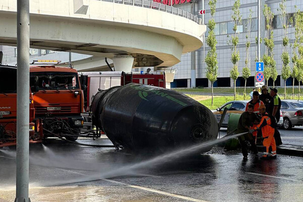 «ДТП с участием бетономешалки произошло рядом с ТПУ Нижегородская. Из-за аварии образовалась пробка. На кадрах видно, как миксер от грузовика рухнул на дорогу», — сообщает канал.