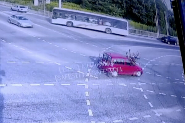 Уличная камера запечатлела инцидент. На кадрах видно, как красный автомобиль сбивает велосипедиста. От удара мужчина отлетает в сторону на несколько метров. На записи также заметно, что в момент ДТП человек находился в защитном шлеме.