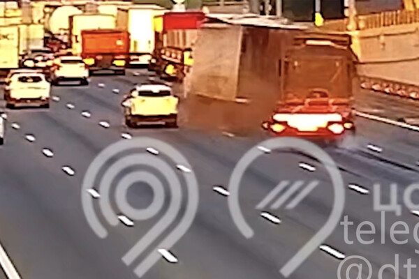 Судя по кадрам, тягач с платформой врезался в фуру, а затем перестроился вправо и ударил еще один грузовой автомобиль. После этого фура протаранила еще две машины.