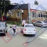 На кадрах видно, что белый автомобиль переехал ребенка при повороте налево. Мать успела перейти дорогу, а после наезда вытянула дочь из-под машины за руку.