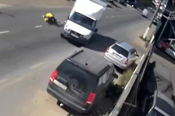 На размещенных кадрах видно, как водитель «Газели» задевает самокатчика во время движения.