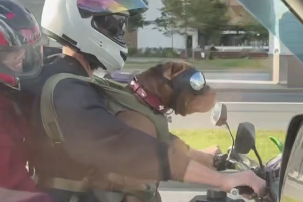 Очевидцы запечатлели инцидент на видео. На кадрах видно, как собака в защитных очках сидит на мотоцикле, которым управляет человек. На записи также заметно, что на мотоцикле находится девушка, которая машет в камеру, а животное в этот момент двигает лапами.