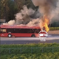 На опубликованных в сети кадрах видно, что пламя охватило заднюю часть общественного транспорта.